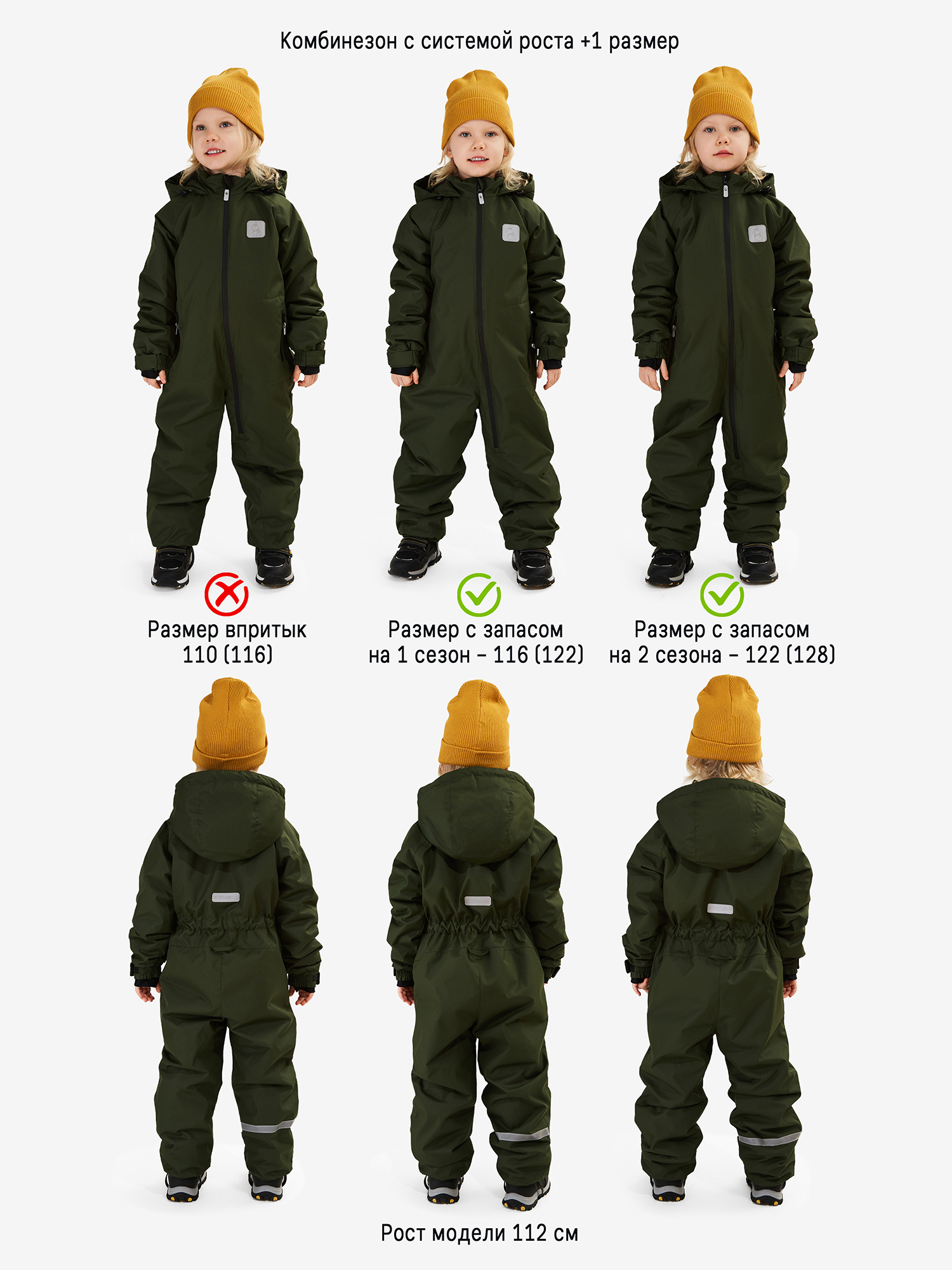 Не забывайте о системе роста, которая позволяет увеличить размер на +1 после распарывания технологических швов.